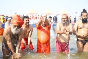 संतों ने छिड़का संगम का पवित्र जल