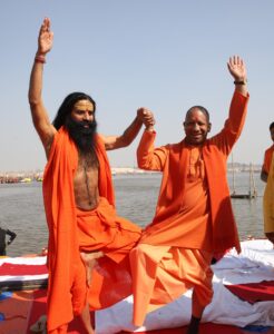 संगम स्नान के दौरान बाबा रामदेव और सतुआ बाबा ने मुख्यमंत्री योगी आदित्यनाथ को अलग से डुबकी लगवाई। संगम स्नान के बाद स्वामी रामदेव ने मुख्यमंत्री योगी का हाथ पकड़कर विशेष योग आसन ताड़ासन भी कराया।