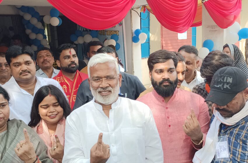 भाजपा उम्मीदवार लल्लू सिंह एवं महापौर गिरीश पति ने किया मतदान