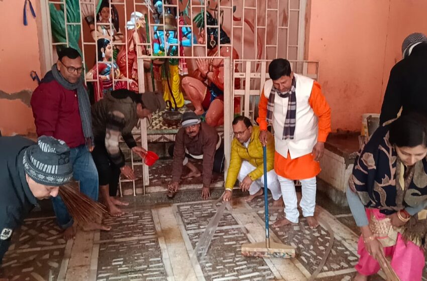 भाजपा नगर मंडल ने श्रीराम मंदिर परिसर में चलाया स्वच्छता अभियान