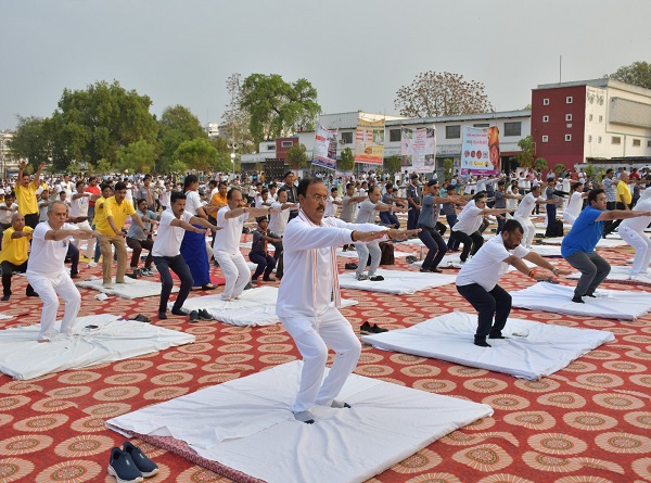 जिला प्रशासन के द्वारा दसवां अंतर्राष्ट्रीय योग दिवस के अवसर पर जिला स्तरीय सामूहिक योग व श्री अन्न संवर्धन अभियान का शुभारंभ प्रातः6 बजे किया गया जो सुबह 7ः45 तक जारी रहा। इस अवसर पर मुख्य अतिथि के रुप में राज्य मंत्री गौतम टेटवाल, सांसद रोडमल नागर, जनप्रतिनिधि, गणमान्य नागरिक, विभिन्न स्कूल के विधार्थी, शिक्षकगण सहित अन्य विभागों के कर्मचारियों ने हिस्सा लेकर सामूहिक योग किया। योग दिवस कार्यक्रम का सीधा प्रसारण भी किया गया।