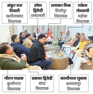 और तो और भाजपा ने तो जातीयताओं के आधार पर अपने यहां मोर्चा बना रखा है। अब ब्राह्मण विधायकों की बैठक पर भाजपा को मिर्चा लग रहा है। जबकि जातीयता के मोर्चा का मिर्चा भाजपा ने ही बोया है।भाजपा ने तो विभिन्न जातीय समाज के दलों की बनी पार्टियों को मंत्रिमंडल में शामिल कर रखा है। यह तो वही बात हो गई कि गुड़ खाओ और गुलगुला से परहेज़ करो। बैठक में सीएम योगी के पूर्व मीडिया सलाहकार एवं देवरिया विधायक डॉक्टर शलभ मणि त्रिपाठी, पीएम नरेंद्र मोदी के प्रधान सचिव रहे नृपेंद्र मिश्रा के बेटे और एमएलसी साकेत मिश्रा, नौतनवां विधायक ऋषि त्रिपाठी, तरबगंज से विधायक प्रेमनारायण पांडेय, मिर्जापुर से विधायक रत्नाकर मिश्रा, बांदा विधायक प्रकाश द्विवेदी, बदलापुर से भाजपा विधायक रमेश मिश्रा, खलीलाबाद से विधायक अंकुर राज तिवारी और मेहनौन से भाजपा विनय द्विवेदी सहित अन्य विधायक बैठक में शामिल हुए। एमएलसी उमेश द्विवेदी, धर्मेंद्र सिंह और बाबूलाल तिवारी भी बैठक में पहुंचे। ज्ञानपुर से विधायक विपुल दुबे, महोबा से विधायक राकेश गोस्वामी, विधायक विनोद चतुर्वेदी, संजय शर्मा, विवेकानंद पांडेय, अनिल त्रिपाठी, अंकुर राज तिवारी, सुभाष त्रिपाठी, अनिल पाराशर, कैलाशनाथ शुक्ला, प्रेमनारायण पाण्डेय, ज्ञान तिवारी और सुनील दत्त द्विवेदी भी मौजूद रहे।